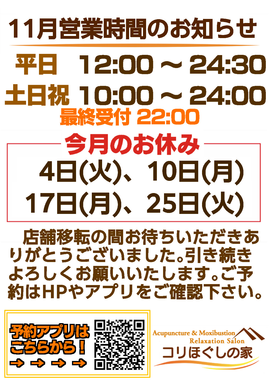 今までのマッサージやリラクゼーションの価格ですと、「値段が高いから行けない!」「行けても月に1回位かな~!」という感じだったと思いますが、価格がリーズナブルになることで少しでも多く来て頂き、血行不良の状態を少しでも減らせることができれば、日々悩まされる疲れや倦怠感などの改善につながる事だと思います。